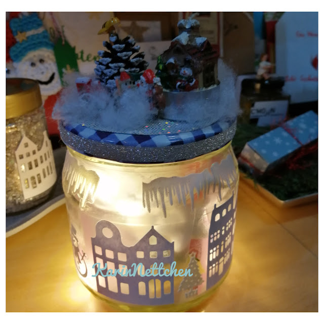 Das Licht scheint schön durch, im Vordergrund habe ich verschiedene Stanzteile kombiniert.